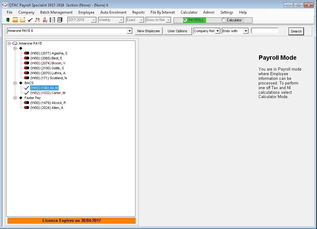 All the basic work is completed in BackOffice; completing timesheets and expenses; applying to invoices; marking the invoices or individual lines as paid; and then pushing the pay record to QTAC. There is a simple update routine to process the payroll into QTAC and close the pay period. Once that is complete, then it is back to BackOffice to run payslips, run text queues, create BACS files and run reports